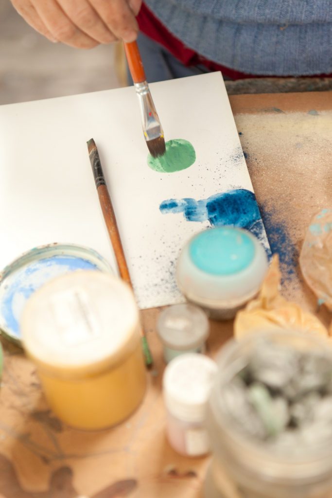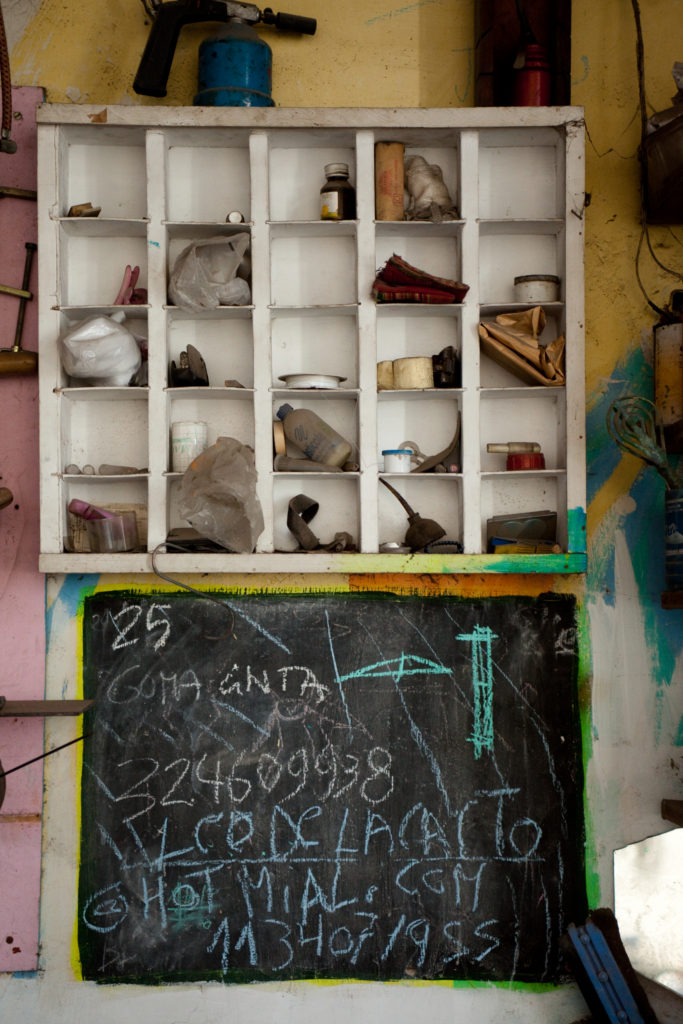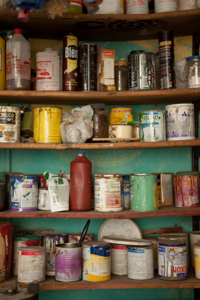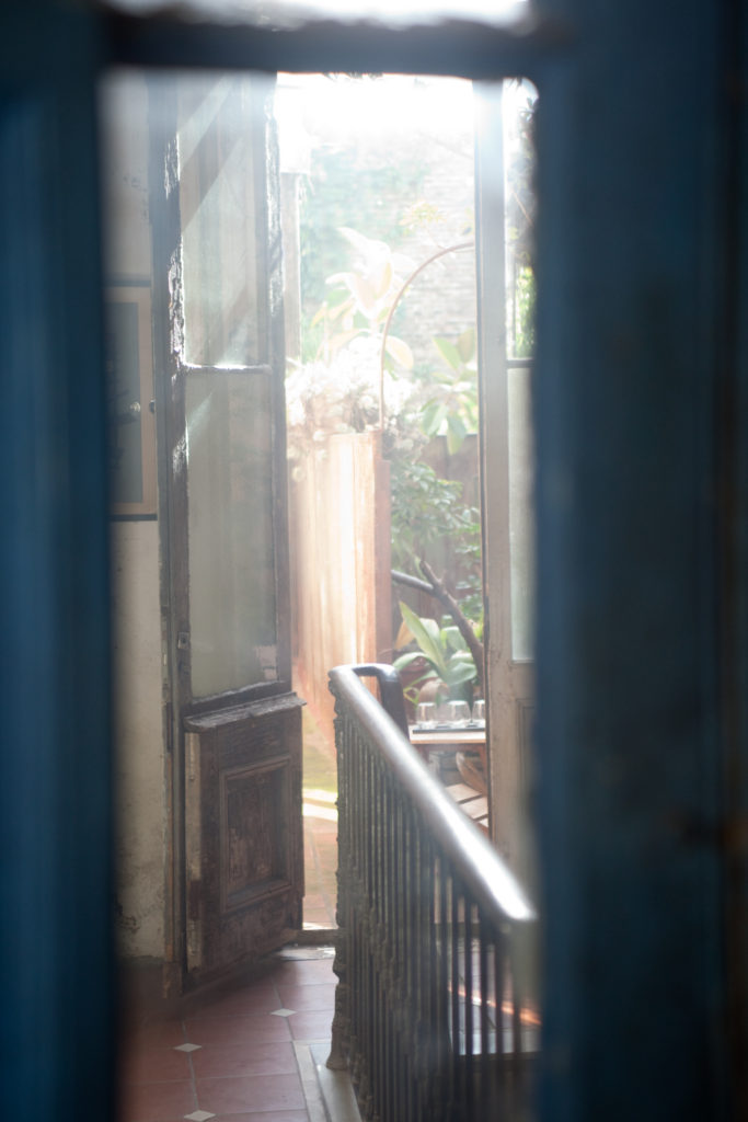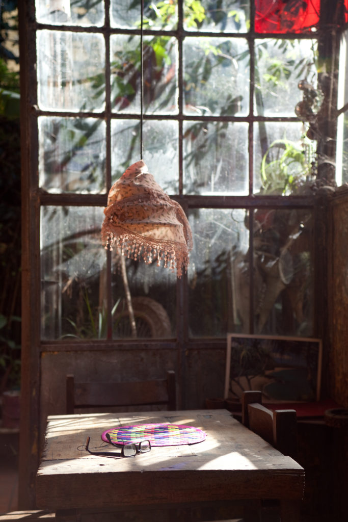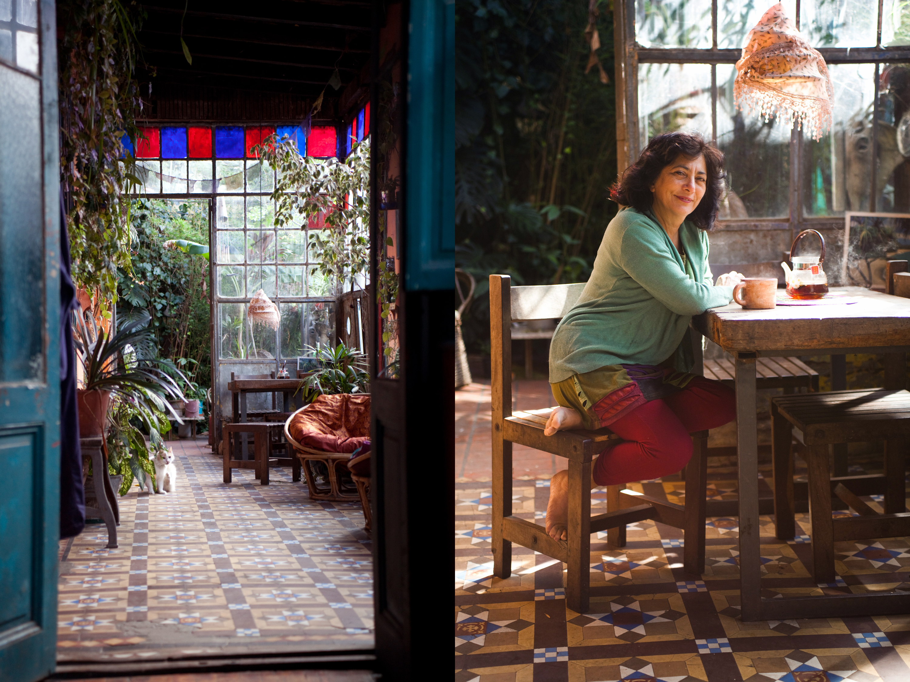 Fabiana vive en La Boca, un barrio emblemático de casas de chapa en el sur de la ciudad de Buenos Aires, que estuvo poblado de inmigrantes italianos en el siglo XIX y de pintores que se dedicaron a retratarlo en el siglo XX. La visité en su casa taller frente al Riachuelo, en la desembocadura del río de la Plata. Un primer piso del 1900 al que se llega a través de una escalera de mármol gastada por todxs los que alguna vez la atravesaron. Ella me preparó un té para contrarrestar el viento frío que soplaba desde el río y nos sentamos a conversar a la mesa rodeadas de plantas, bajo un cerramiento de vidrio y hierro oxidado, hermoso y enclenque. Mientras un par de gatos se deslizaban con embriaguez entre nuestros pies y algunos haces de luz se filtraban a través de los vidrios de colores, Fabiana me contó su recorrido, que me pareció tan particular como su lugar en el mundo.