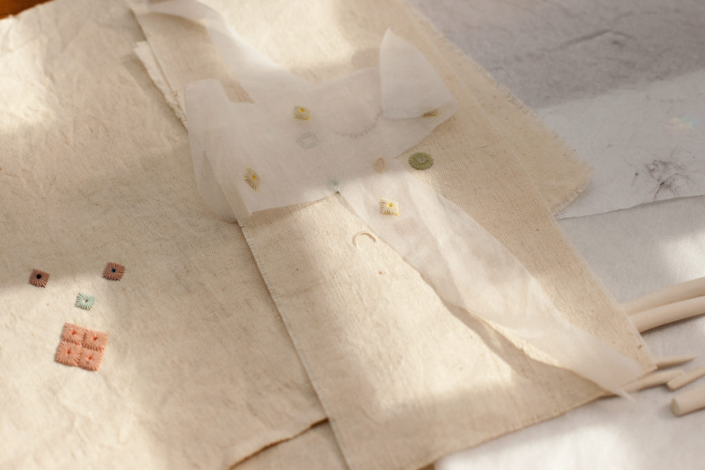 Ahora, por ejemplo, de ese camino que salió de tanto trabajar con las tramas, surgió la idea de -por un error en una tela que quedó marcada- empezar a investigar qué pasa con las cicatrices que quedan en las telas cuando se liberan del hilo. Bordar es algo que no puedo dejar de hacer, algo que me hace bien, no quiero que suene pretensioso, pero es algo que me conecta casi con el orden de lo místico.