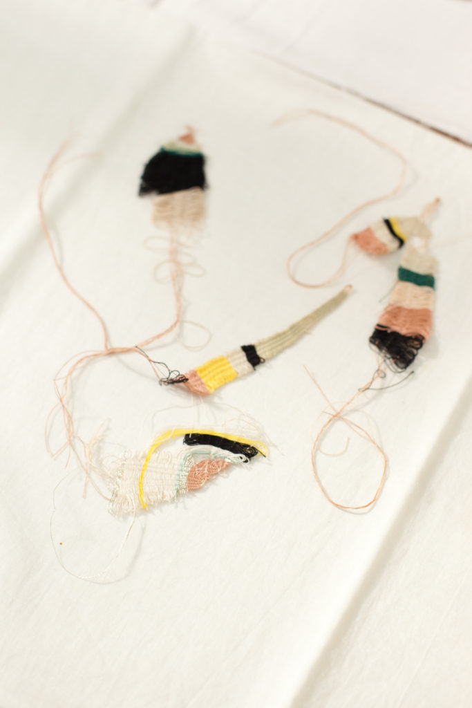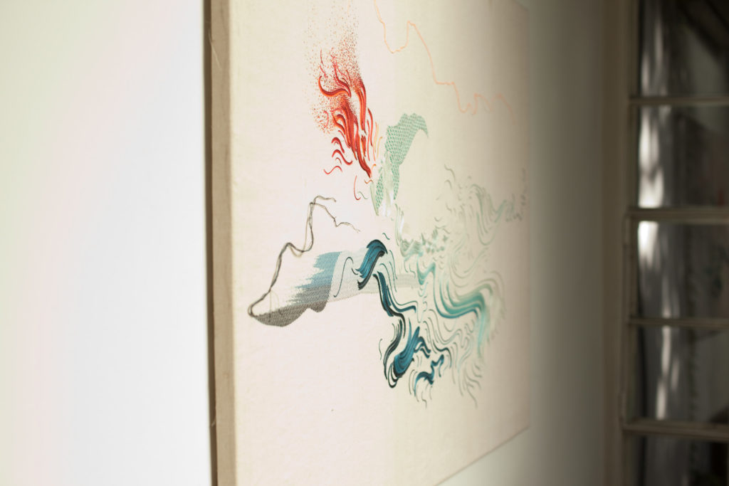 -Trabajo con hilos muy finos, con formatos más bien pequeños, entonces es todo muy meticuloso, casi de laboratorio, y pienso que son más investigaciones que hago sobre los materiales que algo que imagino que va a quedar de determinada forma. Más que nada voy siguiendo lo que me va surgiendo instintivamente en el camino. Mi trabajo pasa más por el hacer y después viene la reflexión, no me pongo a pensar previamente que es lo que voy a hacer, lo hago. Y después hay un pensamiento que lo acompaña.
