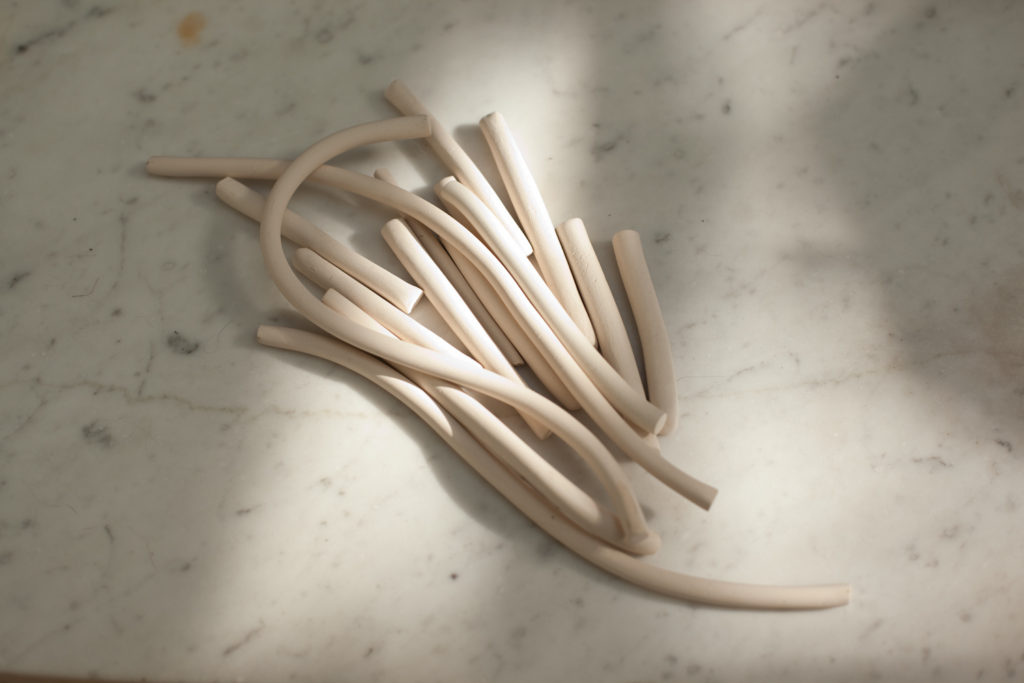 -El dibujo siempre estuvo en mi vida, me encanta dibujar, no lo hago tanto porque me gusta más bordar, pero por ejemplo, los últimos dibujos que hice son óleos pastel negros sobre papel de seda en donde armé un catálogo de puntos de bordado, seleccioné algunos y los dibujé generando tramas, y surgieron unos dibujos negros que se llaman escapulario, porque así se llama el punto que me inspiró. Ese trabajo me parece que cerró en cuanto al vínculo entre el dibujo, el bordado y la cerámica. La relación con la cerámica surgió en una clase de dibujo en donde nos hicieron experimentar con ese material para después dibujar esas texturas , y lo que pasó fue que a esas cerámicas en lugar de dibujarlas les empecé a hacer agujeros para pasarles hilos y me di cuenta de que todo terminaba siempre en el bordado. La cerámica vino bien para ese momento pero no es con lo que más me identifico.