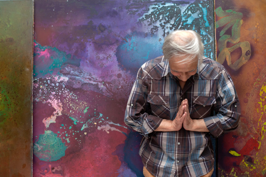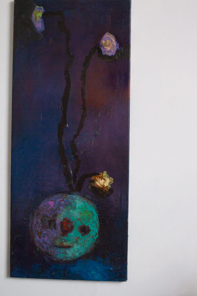 Visité a Alfredo en su taller buscando saber de qué está hecho ese universo evanescente de sus pinturas donde la figuración lucha con una abstracción oceánica. Nuestro diálogo fue también una batalla dulce: yo lo perseguía con curiosidad tratando de robarle la esencia de la que están hechas sus telas y él se escabullía en esa enorme biblioteca-pentagrama que es su cabeza, dando saltos mortales entre carcajadas y pases mágicos. Mientras conversamos me sentí frente a un ser extraordinario y vasto que surfea, naufraga y vuelve a surfear en ese mismo oceáno del que están hechas sus obras. Espero poder reflejar algo de ese viaje submarino en estas líneas.